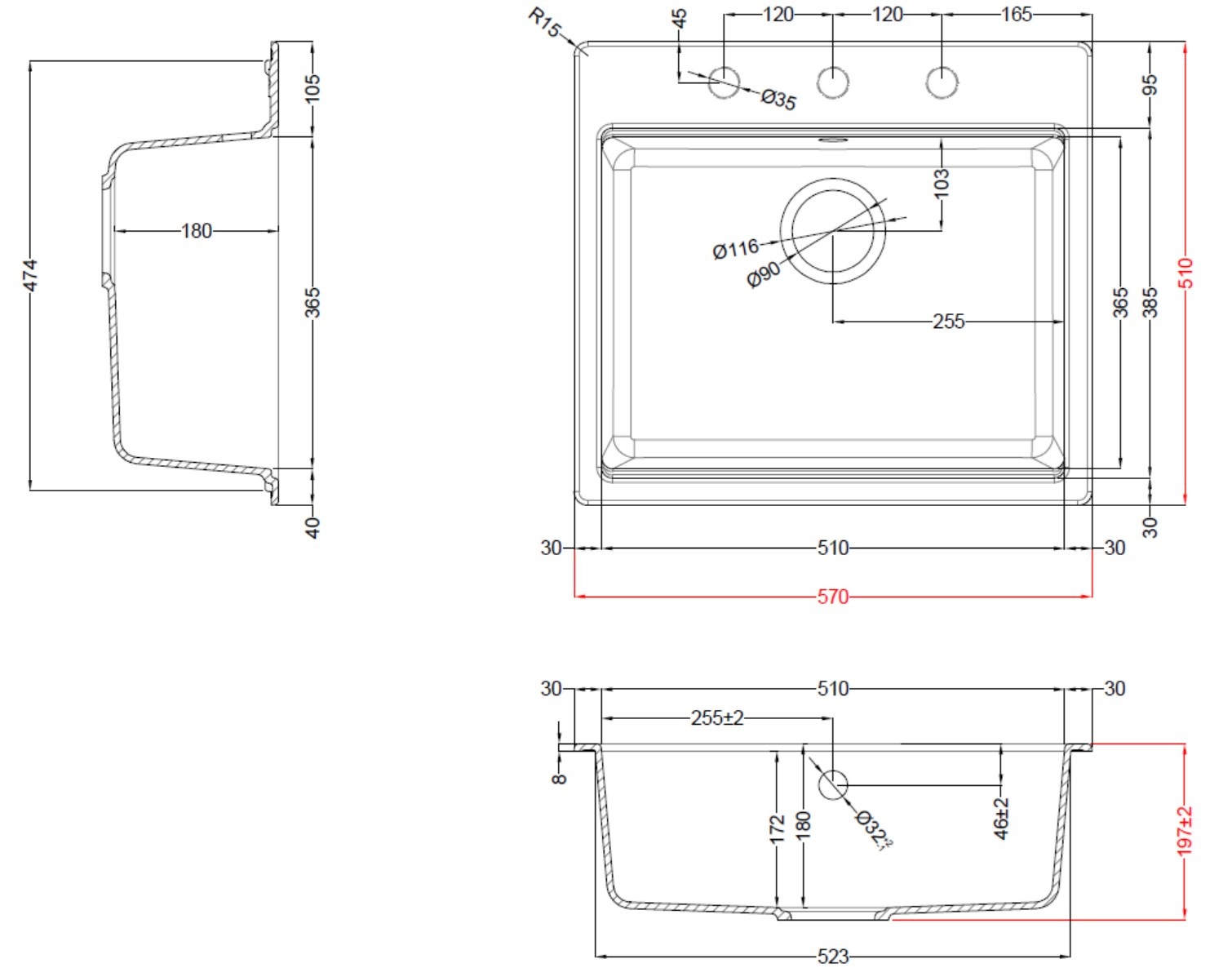 - ▪ Мийка підійде як для кварцитових, так і ламінованих стільниць