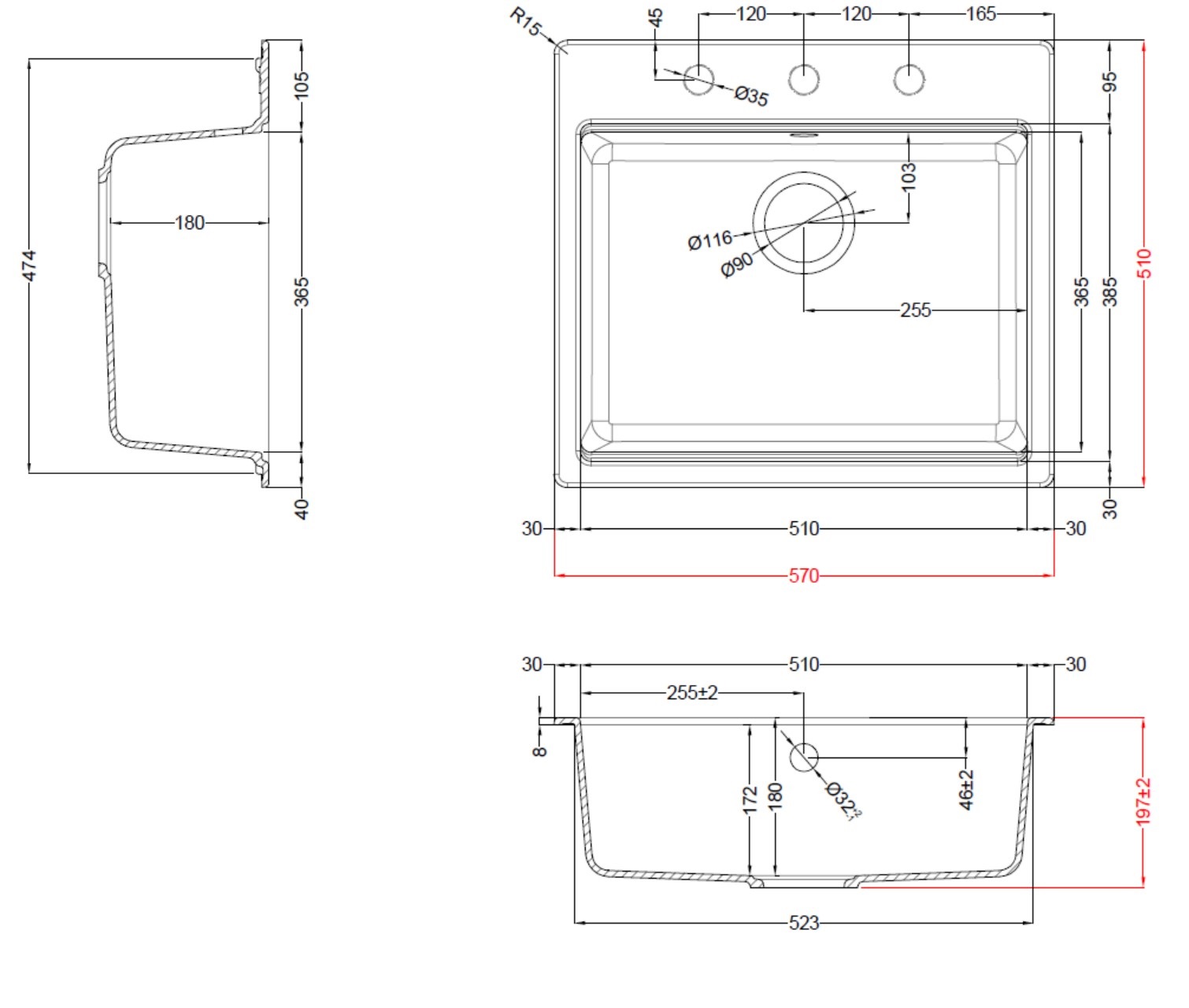 - ▪ Мийка підійде як для кварцитових, так і ламінованих стільниць