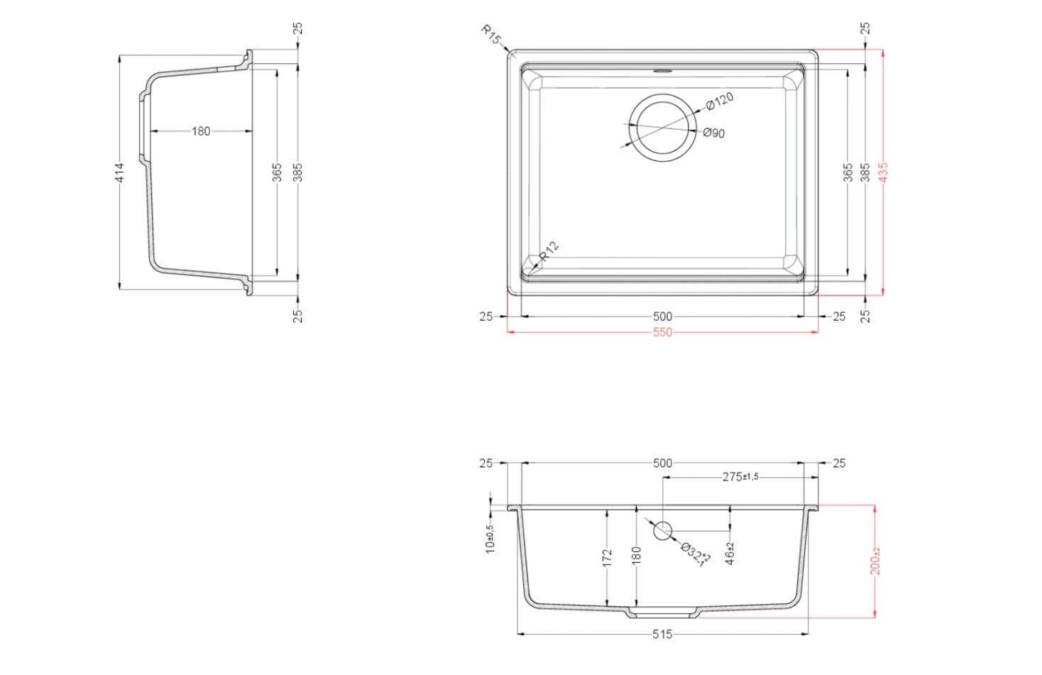 - ▪ Розмір (В × Ш × Г): 200 × 550 × 435 мм
