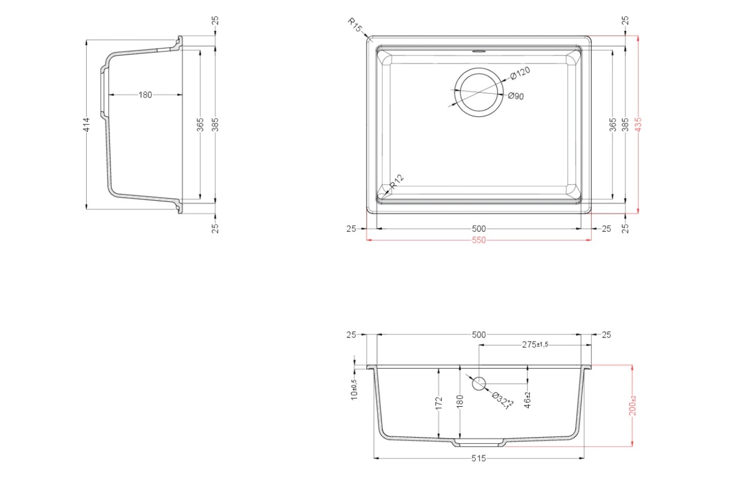 - ▪ Розмір (В × Ш × Г): 200 × 550 × 435 мм