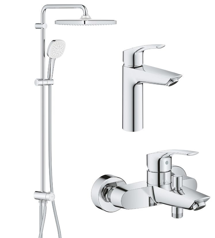 Особенности набора смесителей для ванной Grohe Eurosmart New 3 в 1, хром (UA123246R1)
