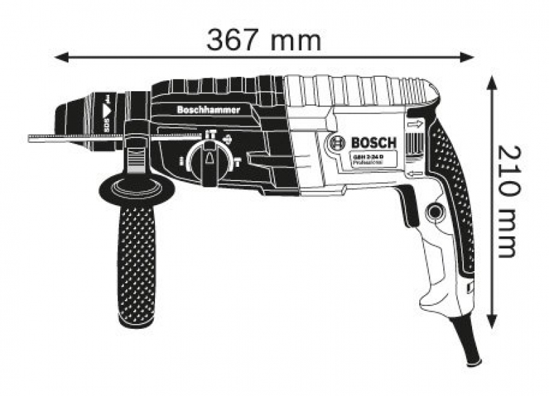 Bosch GBH 2-24 D — це мережевий прямий перфоратор побутового класу, розрахований на свердління та ударні роботи у бетоні та мінеральних матеріалах. Модель поєднує підвищену потужність, значну силу удару та розширені режими роботи, що робить її ефективним інструментом для складніших домашніх і напівпрофесійних завдань.