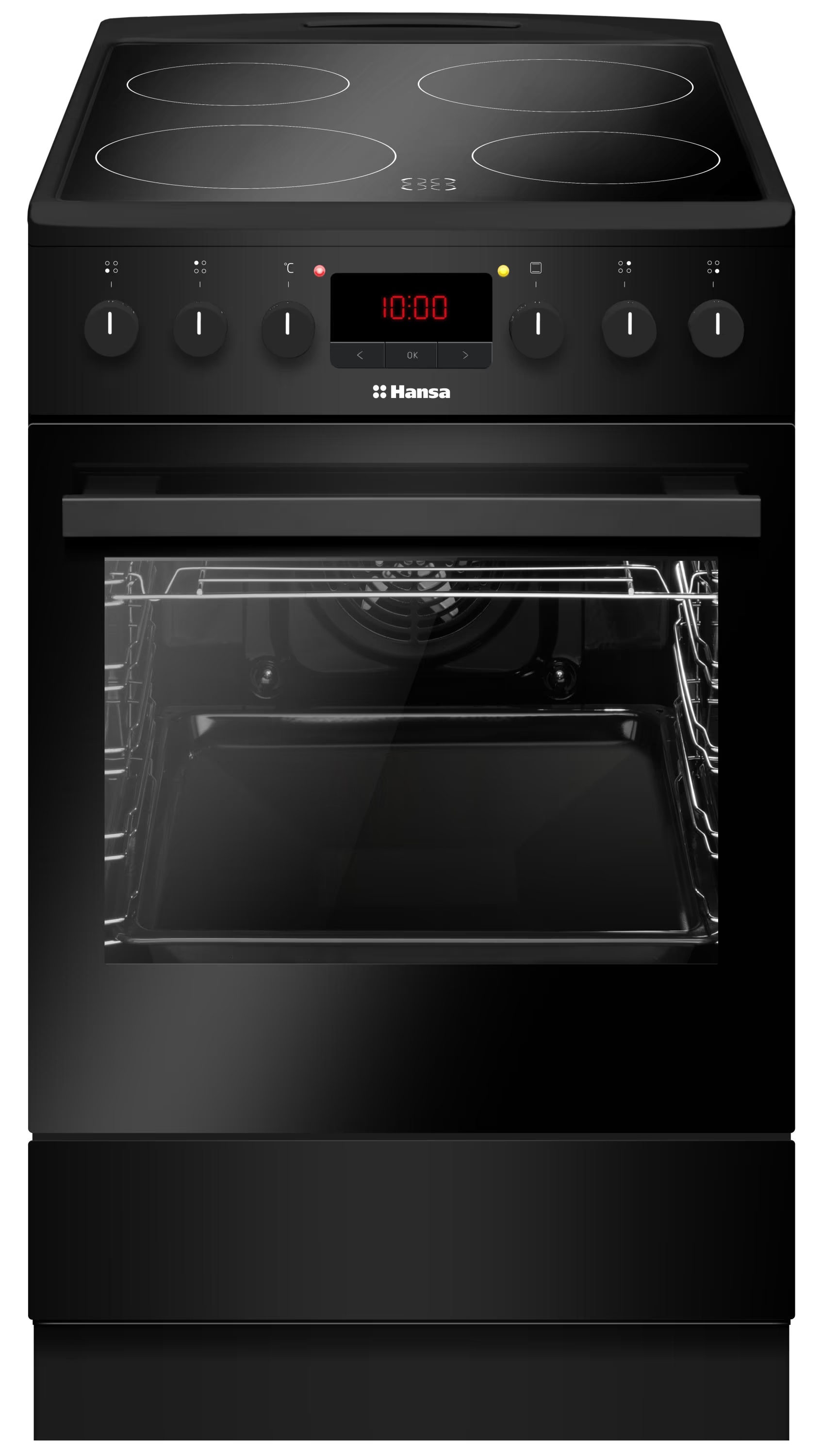 Електроплита Hansa FCCM58209H поєднує сучасну склокерамічну варильну поверхню, рівномірне нагрівання зон High Light та місткий духовой шкаф на 65 літрів із конвекцією та електричним грилем. Завдяки механічному керуванню, електронному таймеру та зручним знімним напрямним модель забезпечує комфортне користування та стабільні результати приготування страв.