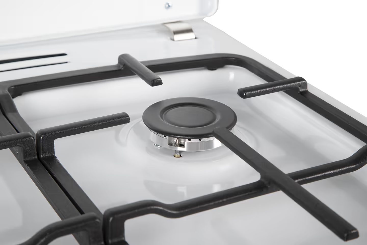 Газові конфорки забезпечують миттєвий нагрів, а чавунні решітки гарантують стабільність навіть для важкого посуду.