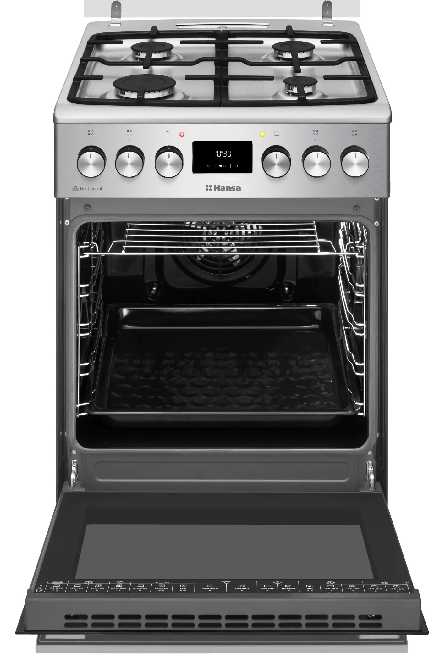 Hansa FCMX58329 оснащена сенсорним LED-дисплеєм і механічними регуляторами, що забезпечують просте та точне керування. Таймер дозволяє задати тривалість приготування, після чого духовка автоматично вимикається й подає звуковий сигнал. Користування плитою — інтуїтивно зрозуміле, навіть без досвіду.
