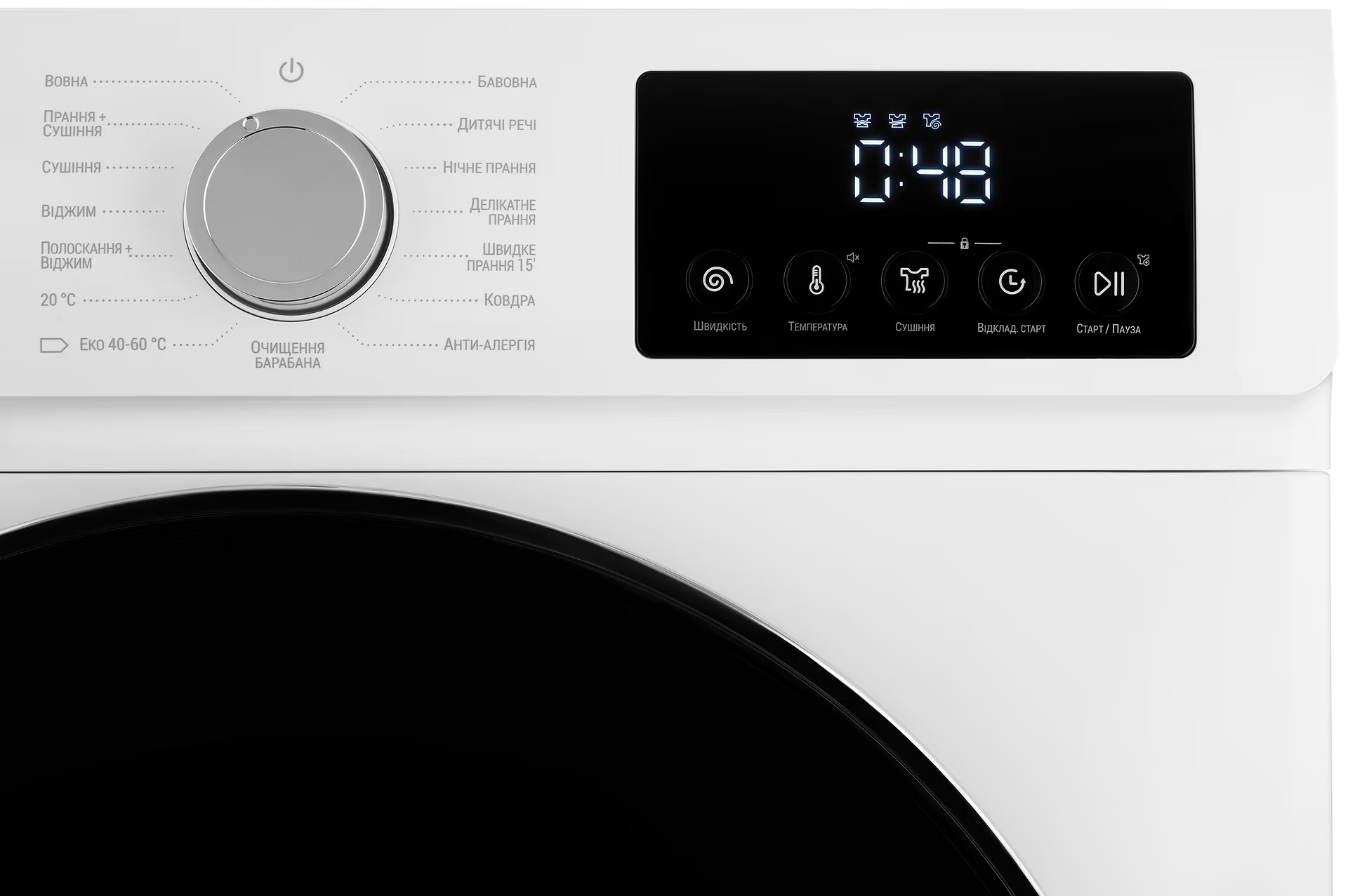 - ▪ Таймер відстрочки старту ▪ Дозавантаження білизни (Старт/Пауза)