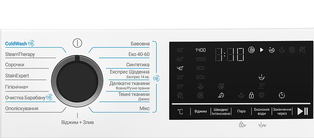 - ▪ Вибір температури прання