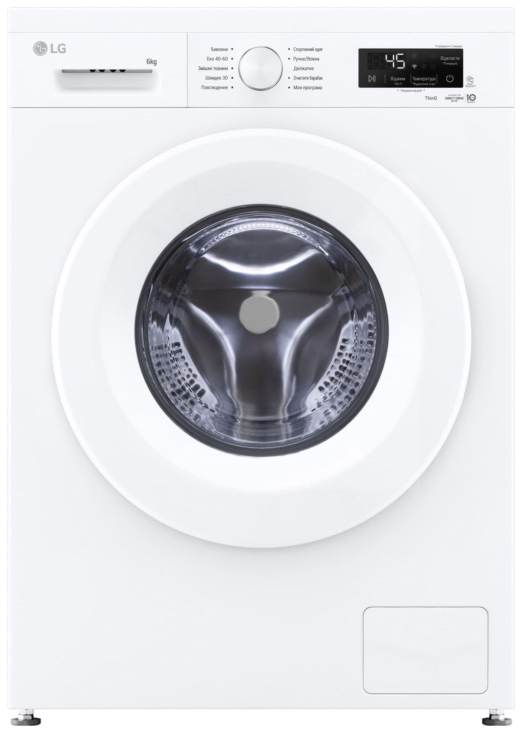 ✅ Пральна машина LG F2Y2NS3WE — 6 кг, Direct Drive, Steam та Wi-Fi