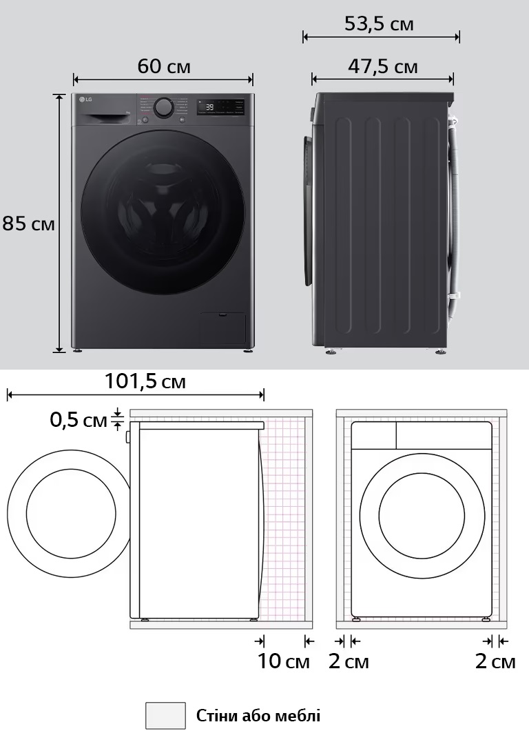- ▪ Зменшена глибина 47,5 см — зручність встановлення в умовах обмеженого простору.