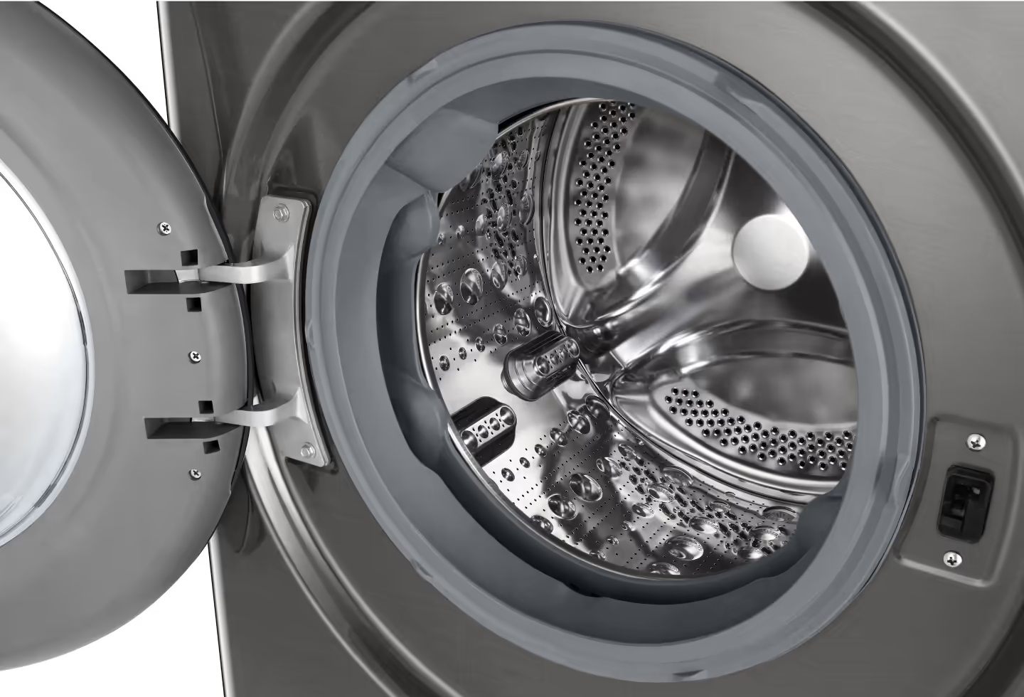 - ▪ Бульбашкова поверхня барабана та ребра з неіржавної сталі у шаховому порядку для дбайливого догляду.
