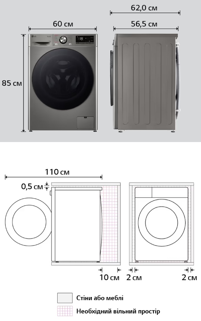 - ▪ LG ThinQ (Wi-Fi) — дистанційне керування, завантаження програм та Smart Diagnosis.