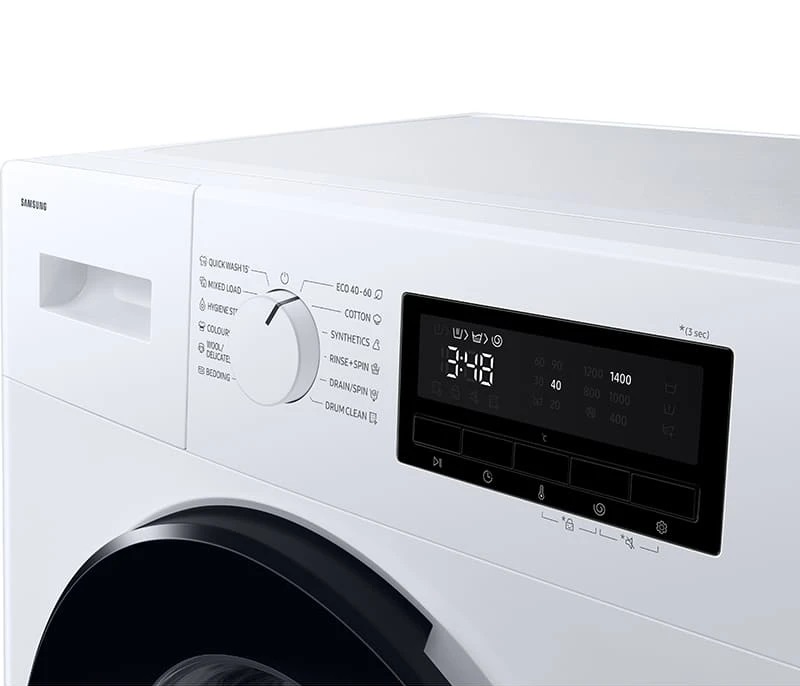 Автоматична пральна машина Samsung WW90FG3M05AWLF поєднує сучасні технології, надійність та високу місткість. Завдяки завантаженню до 9 кг білизни вона ідеально підходить для великої родини, дозволяючи прати об’ємні речі — від постільної білизни до верхнього одягу. Інверторний двигун з прямим приводом забезпечує стабільну роботу та економне енергоспоживання класу A.