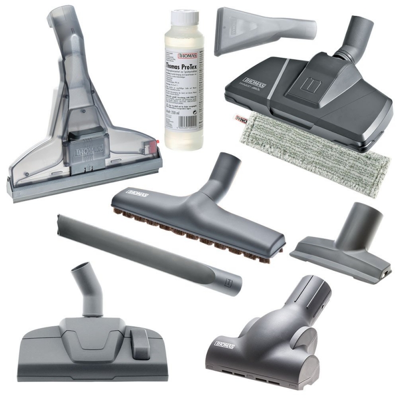 Інші насадки Насадка для вологого прибирання м'яких меблів, Насадка для миття килимів і збору води, Насадка для миття паркету і ламінату, Насадка для сухого прибирання м'яких меблів, Насадка для твердого покриття, Щілинна