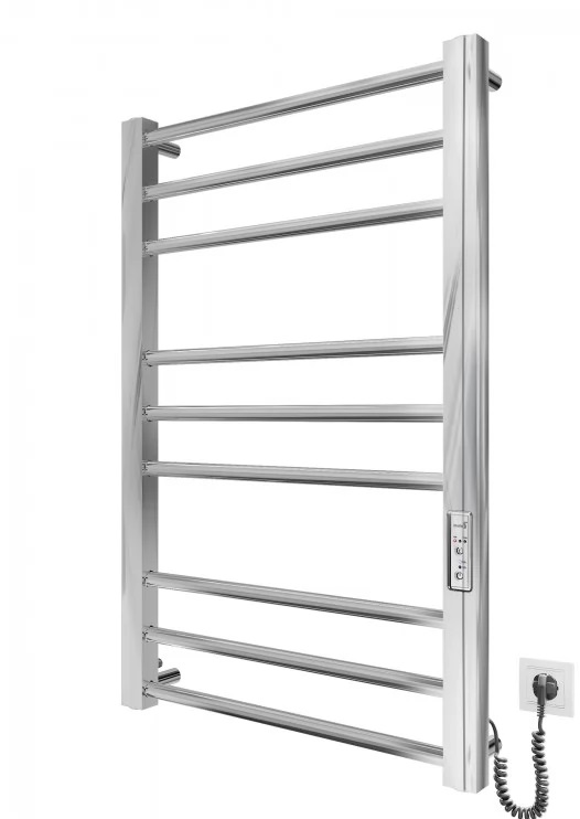 Електросушарка для рушників побутова Преміум Класік-I 800х500/80 TR Обладнана таймером-регулятором та конектором для підключення до розетки з будь-якого боку. Сумісна з комплектом прихованого підключення. Має 9 ребер та стійки з профільної труби. Виготовлений із полірованої нержавіючої сталі без хромування. Варіанти покриття: полірований або сатин, чорний мат, білий глянець, золото, бронза. Температурні режими таймер-регулятора: 40 ° С, 45 ° С, 50 ° С. Варіанти часу: 3, 6 годин та постійне нагрівання. Потужність: 100 Вт. Додатково для зручності використання можна оснастити навісними гачками. Гарантія – 20 років на корпус/5 років на електричну частину.