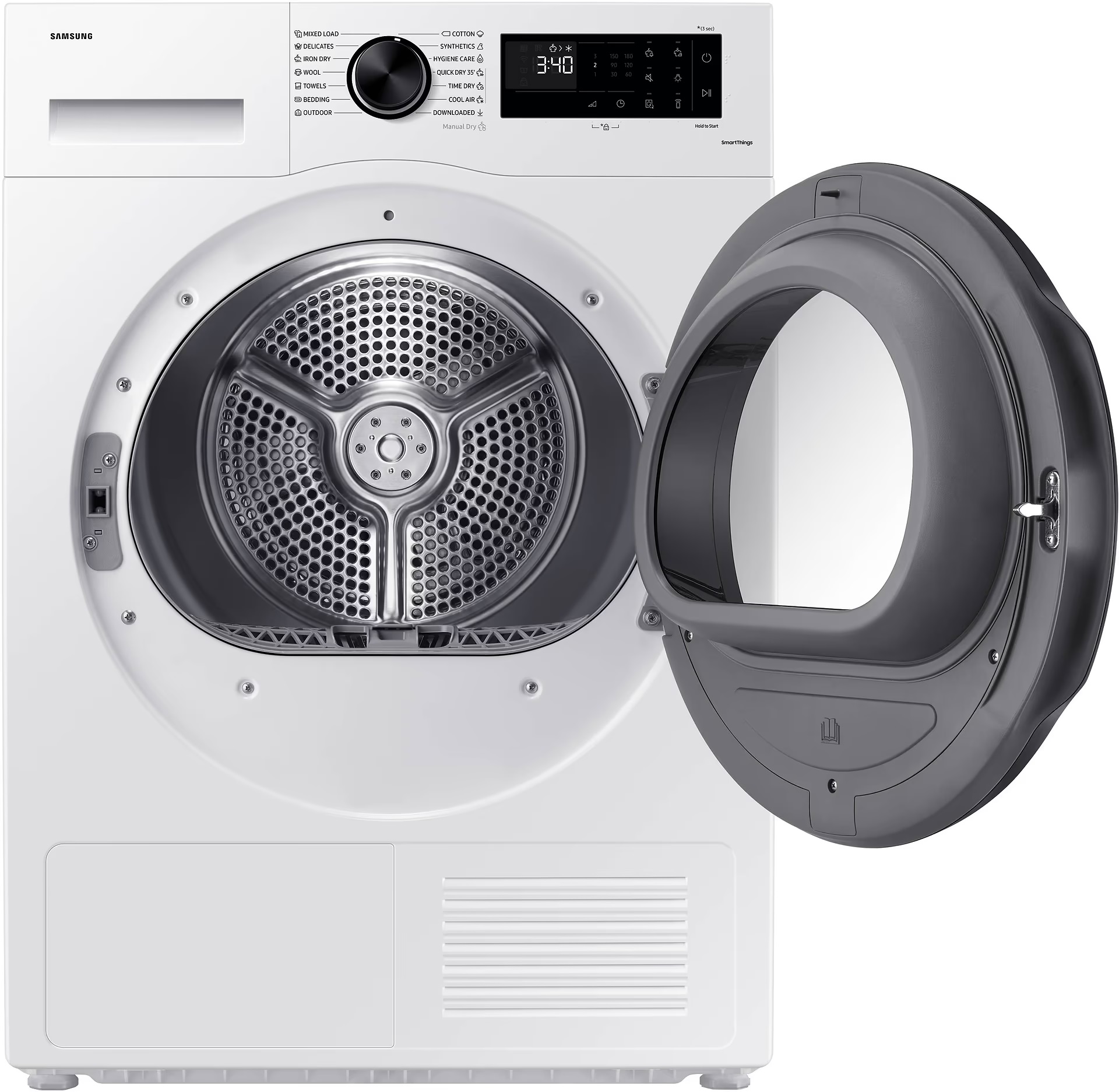 Samsung DV90CGC2A0AEUA — це сушильна машина з тепловим насосом Heat Pump, завантаженням 9 кг і класом енергоефективності A+++. Барабан Diamond та система OptimalDry забезпечують точний контроль вологості та дбайливе сушіння різних типів тканин. Модель підтримує Smart-управління, встановлення в колону та оснащена внутрішнім освітленням для зручності щоденного використання.