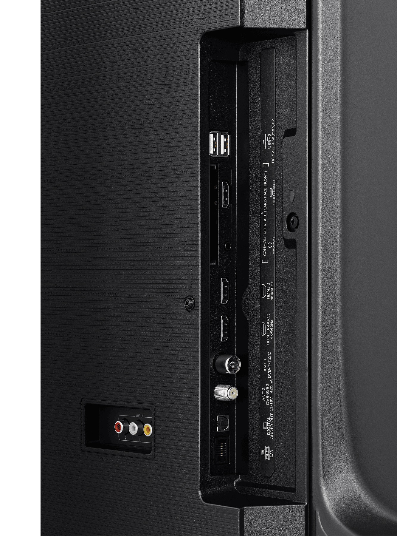 - 3×HDMI 2.1, 2×USB 2.0, Ethernet, RCA, RF-in, CI+, оптичний аудіовихід