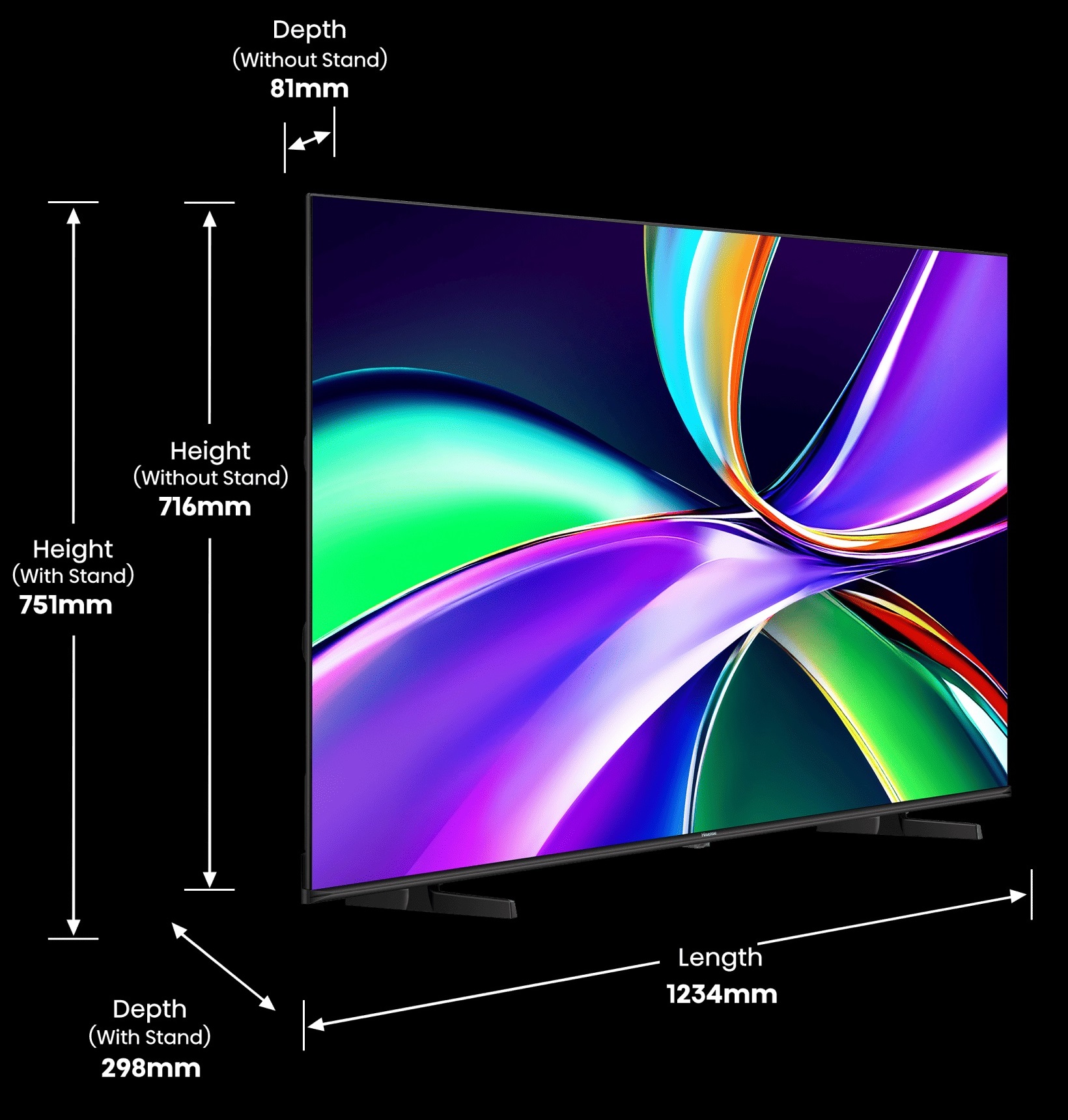 Ця модель поєднує фірмову QLED-панель із глибокою передачею кольорів, підтримку сучасних форматів HDR і вбудований сабвуфер для ще повнішого занурення. Завдяки технологіям штучного інтелекту, геймерським режимам і платформі VIDAA U9 телевізор забезпечує комфортне щоденне використання, а 55-дюймовий екран із VA-матрицею та яскравістю 300 кд/м² гарантує чудову якість зображення.