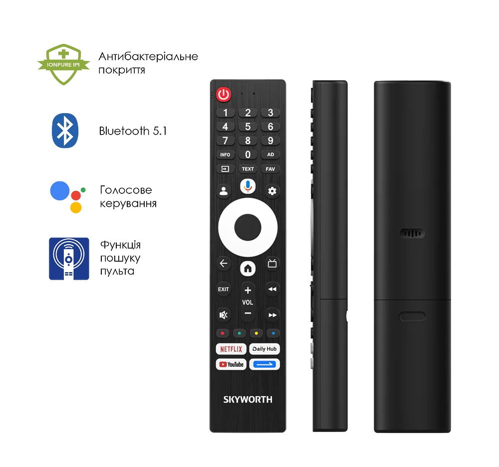 - ▪ Голосове керування — через пульт ▪ Google Assistant ▪ керування зі смартфона ▪ дитячий профіль