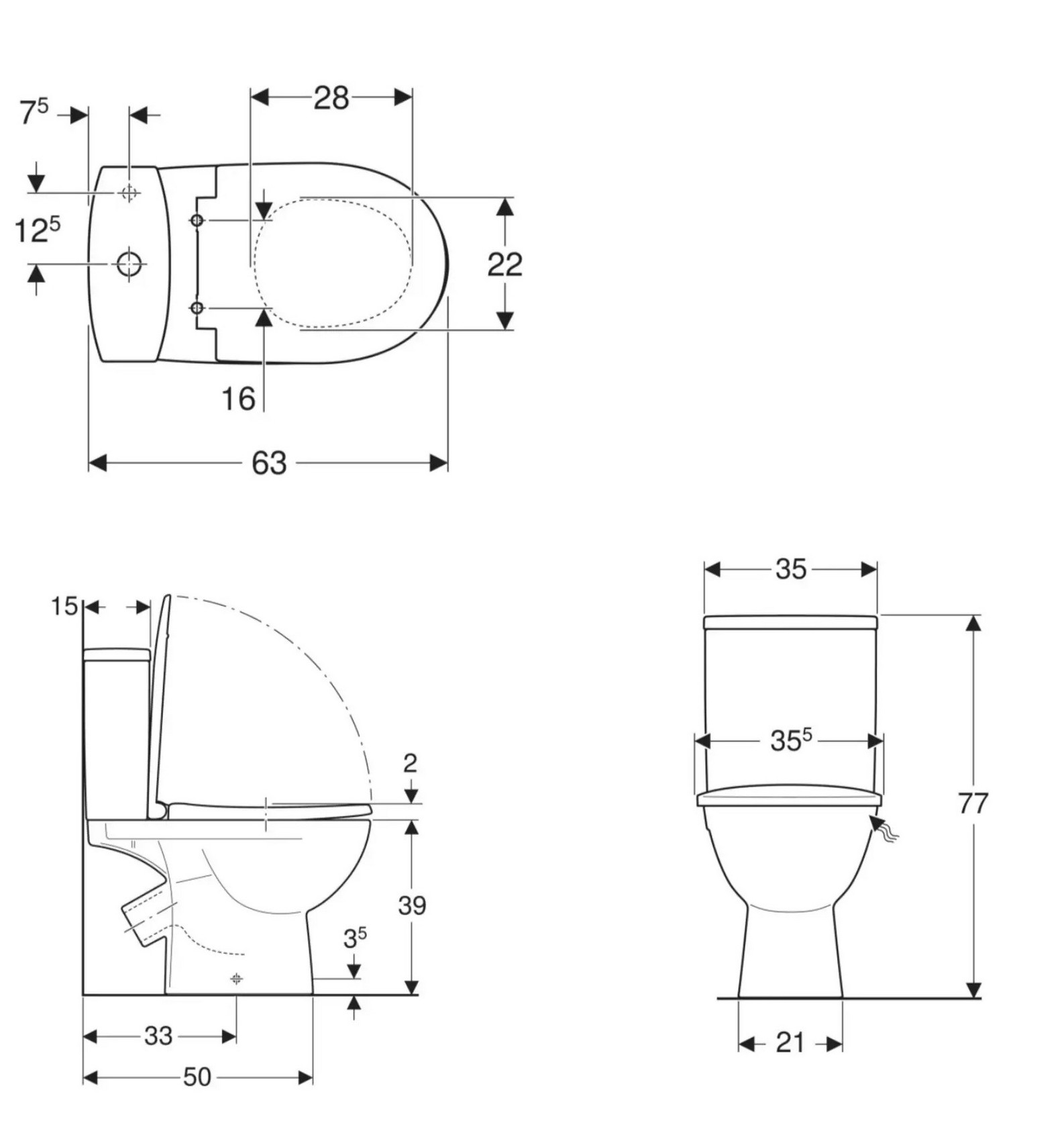 - ▪ Габарити унітаза (ВхШхГ): 770x350x630