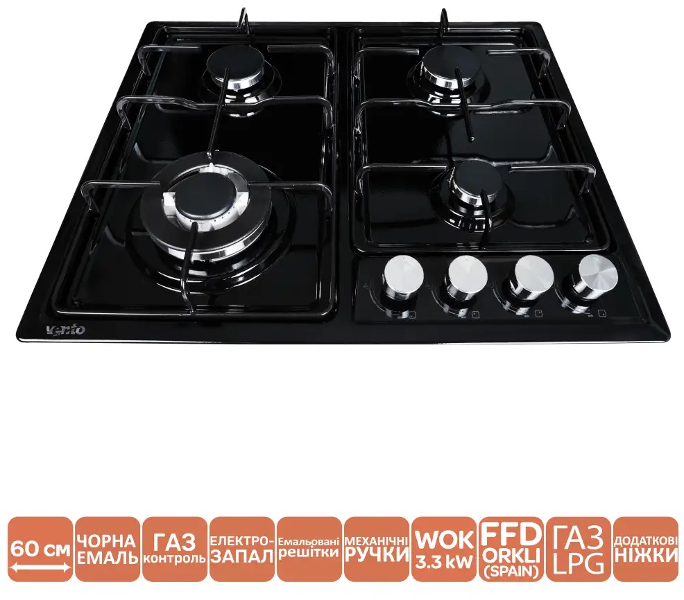 ✅ Варильна поверхня VENTOLUX HG D7 ST (BK) — класика надійності у чорному виконанні