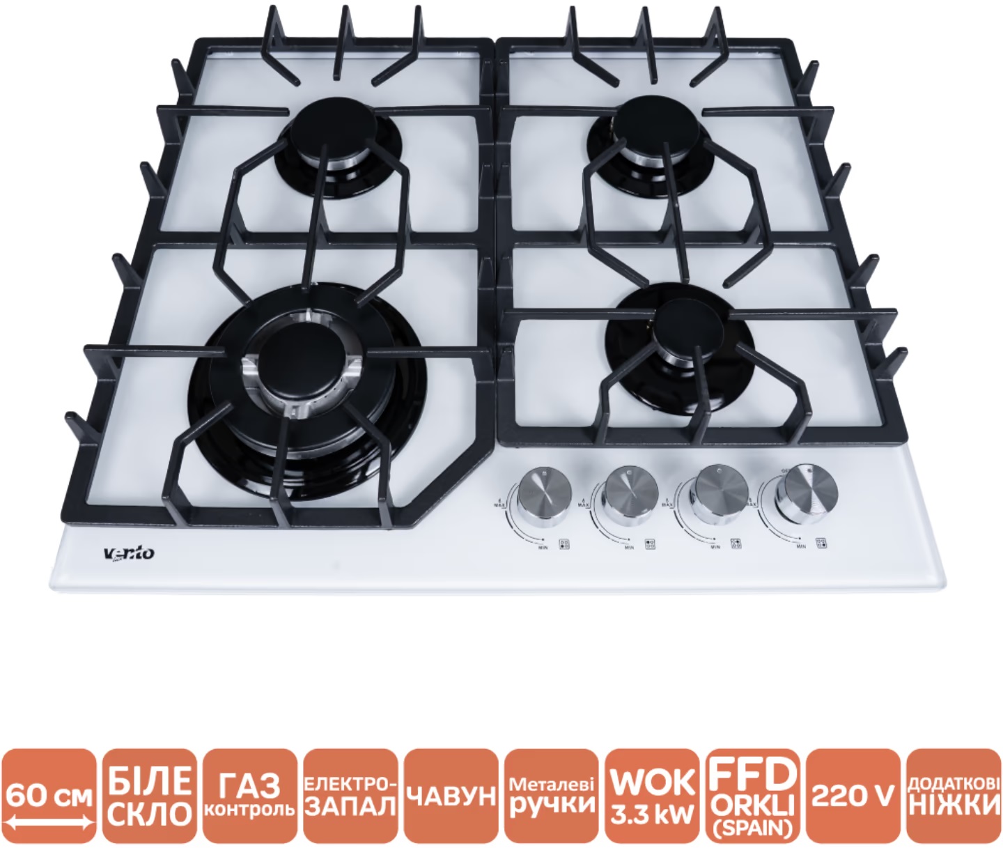 ✅ VENTOLUX HG L7G CEST (WH) — газова варильна поверхня зі скляною основою та WOK-конфоркою