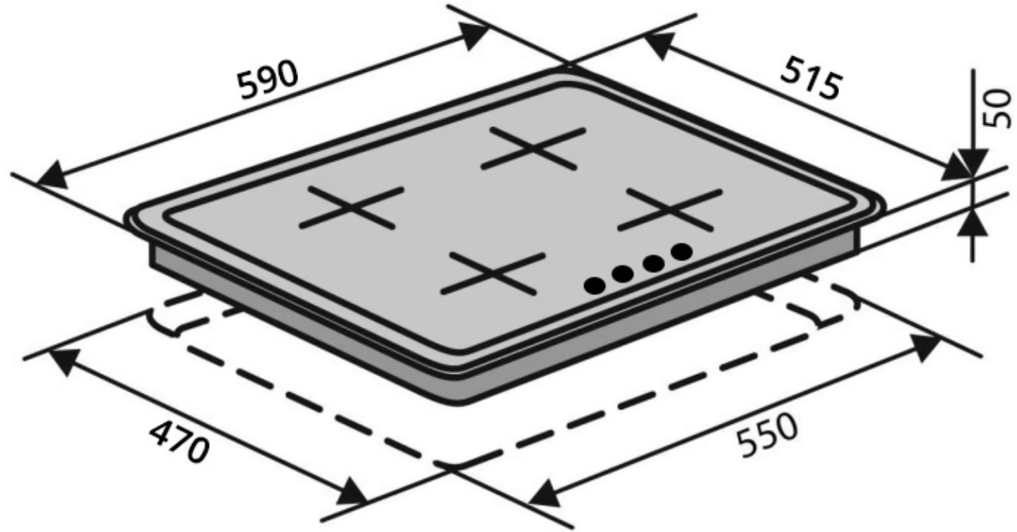 Особливістю моделі є наявність ніжок, що дозволяє використовувати поверхню як вбудовану або окрему. Це зручно для тимчасового використання або як резервне рішення під час відключень електроенергії.