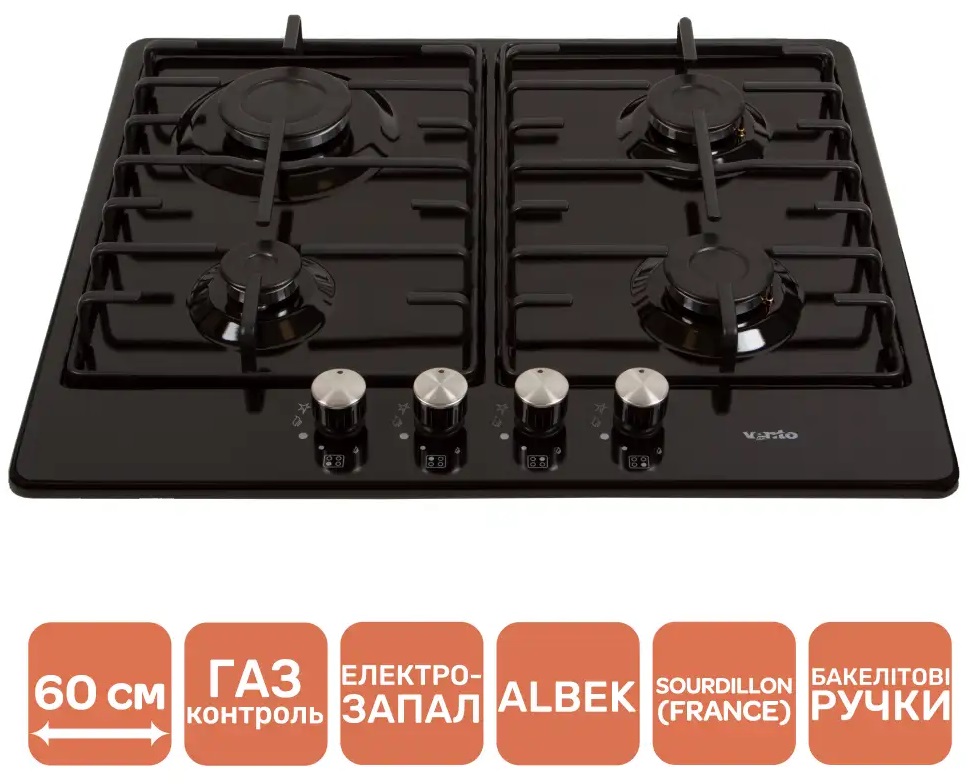 VENTOLUX HG640-MA3 S (BK) — це функціональна газова поверхня з чавунними решітками, товстими розсікачами та надійними французькими жиклерами. Вона чудово підходить для щоденного готування та забезпечує зручність, безпеку й стабільність у користуванні.