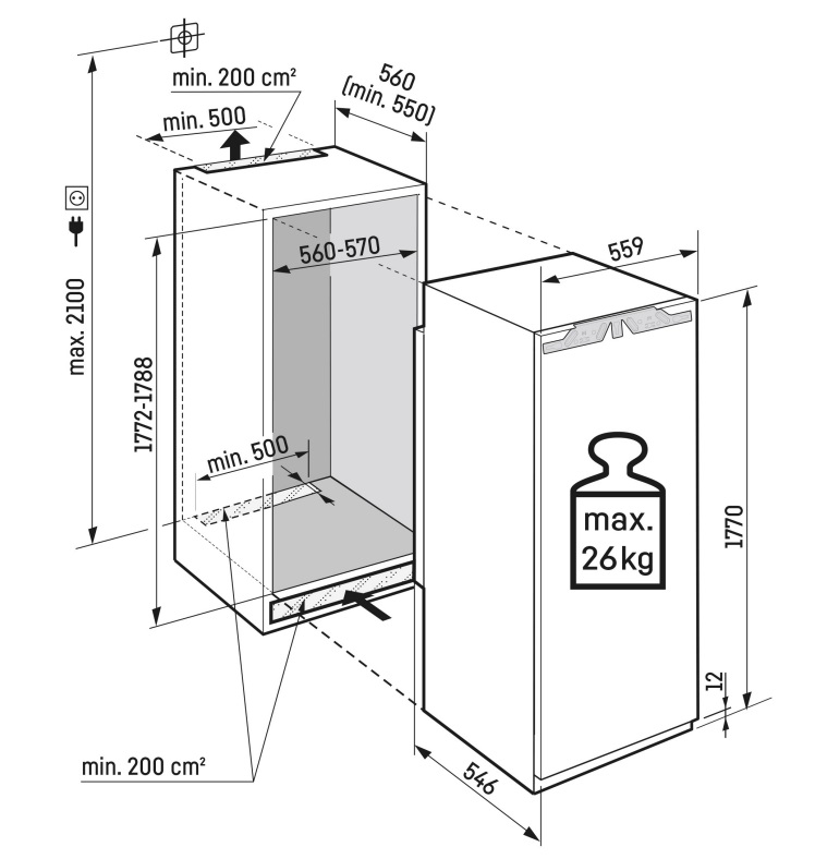 ▪ Габарити (ВхШхГ): 177 × 56 × 55 см (ніша для вбудування)
