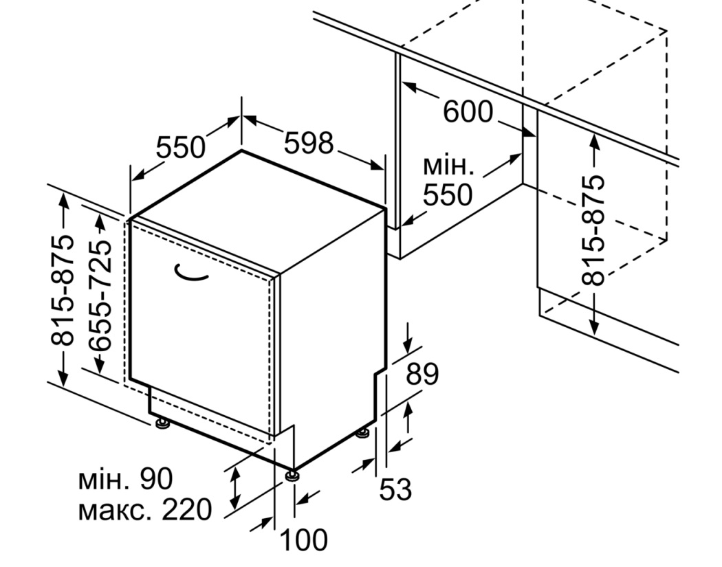 - ▪ Розміри ніші для вбудовування (В×Ш×Г): 81.5–87.5 × 60 × 55 см ▪ Вага: 35.1 кг
