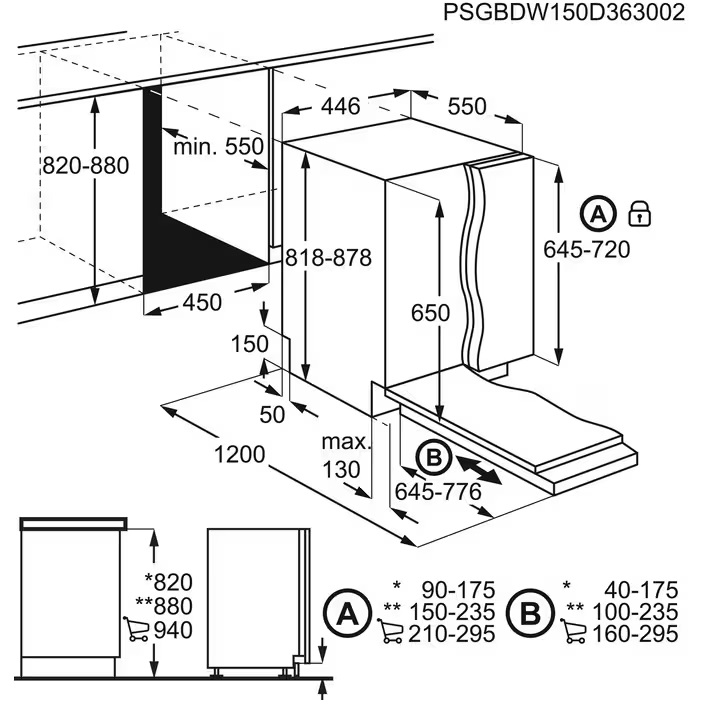 ▪ Розміри ніші: 82–90 × 45 × 55 см.