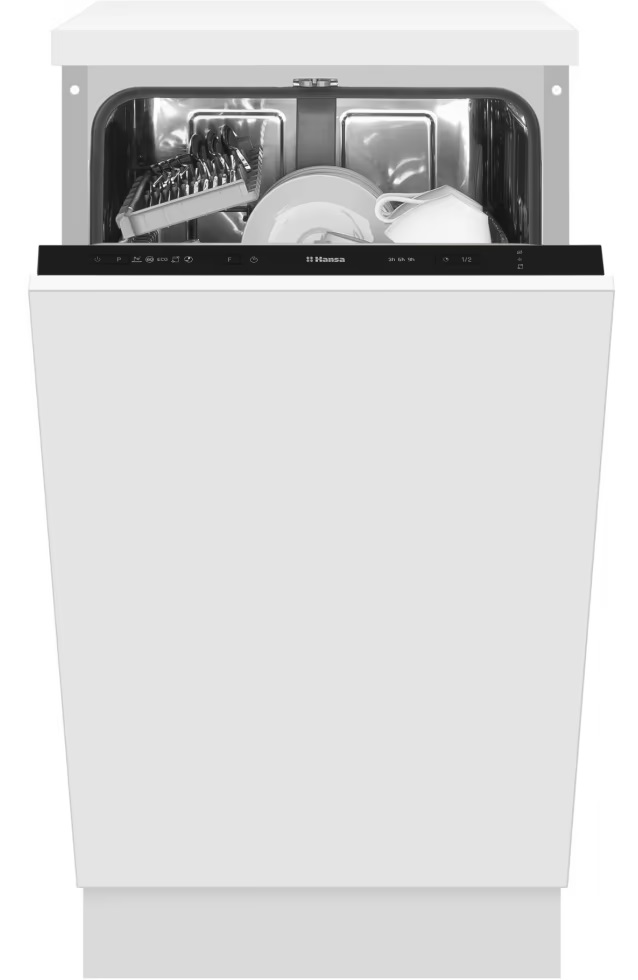 Hansa ZIM435H — це компактна вбудована посудомийна машина з базовим функціоналом і додатковими можливостями для щоденного комфорту. Вона поєднує економне споживання ресурсів, функцію половинного завантаження, ефективну систему сушіння та зручну організацію внутрішнього простору, що робить її практичним вибором для сучасної кухні.