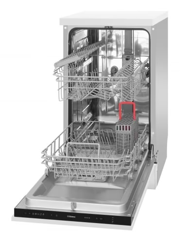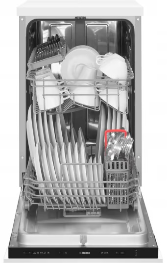 Hansa ZIM435H — це вузька модель шириною 45 см, яка поєднує компактність, базову функціональність і додаткові можливості для більш комфортного щоденного використання. Вона вміщує до 9 комплектів посуду та підходить для кухонь, де важливо раціонально використовувати простір. Завдяки системі сушіння HotAir, функції половинного завантаження та продуманій організації кошиків модель забезпечує стабільний результат миття без зайвих витрат часу та ресурсів.