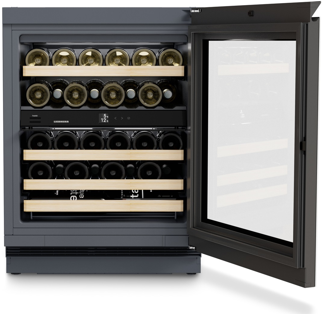 LIEBHERR UWgb 3632 — це більше, ніж просто винна шафа, це справжній інструмент для правильного зберігання колекції. Завдяки двом температурним зонам можна одночасно тримати вина різних сортів у відповідних умовах, не турбуючись про перепади чи втрату смаку. Подвійний контроль температури TempProtect Plus і регульована вологість HumiditySelect зберігають напої у стабільному середовищі, а захист UVProtect гарантує, що навіть у приміщеннях з великою кількістю світла пляшки будуть надійно захищені.