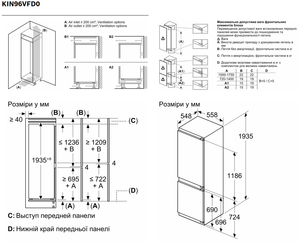 ▪ Мінімальні розміри ніші: 194 × 56 × 55 см