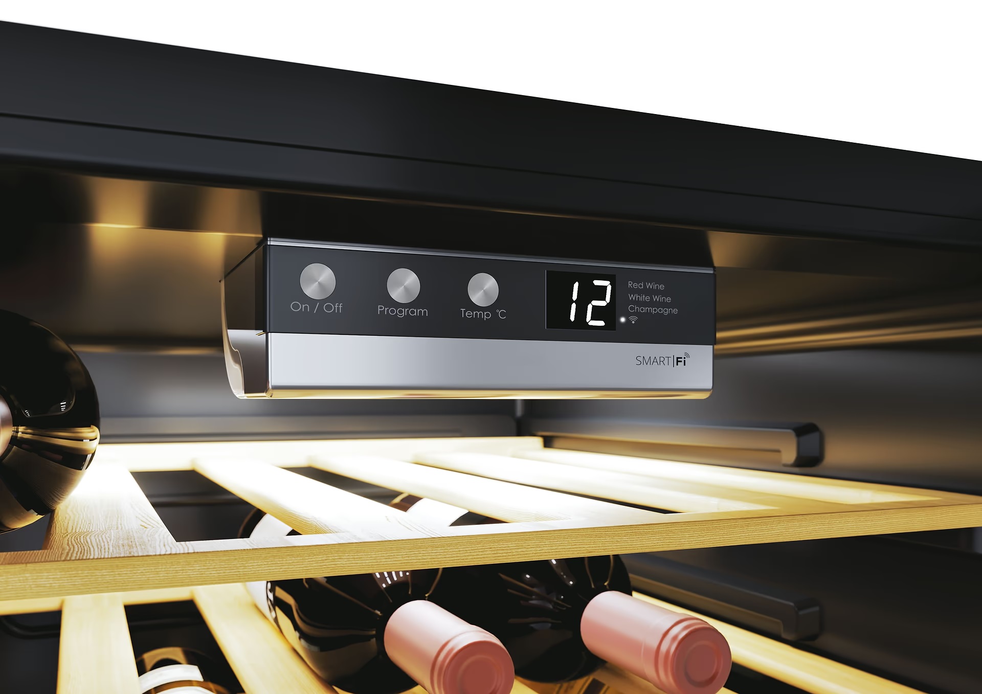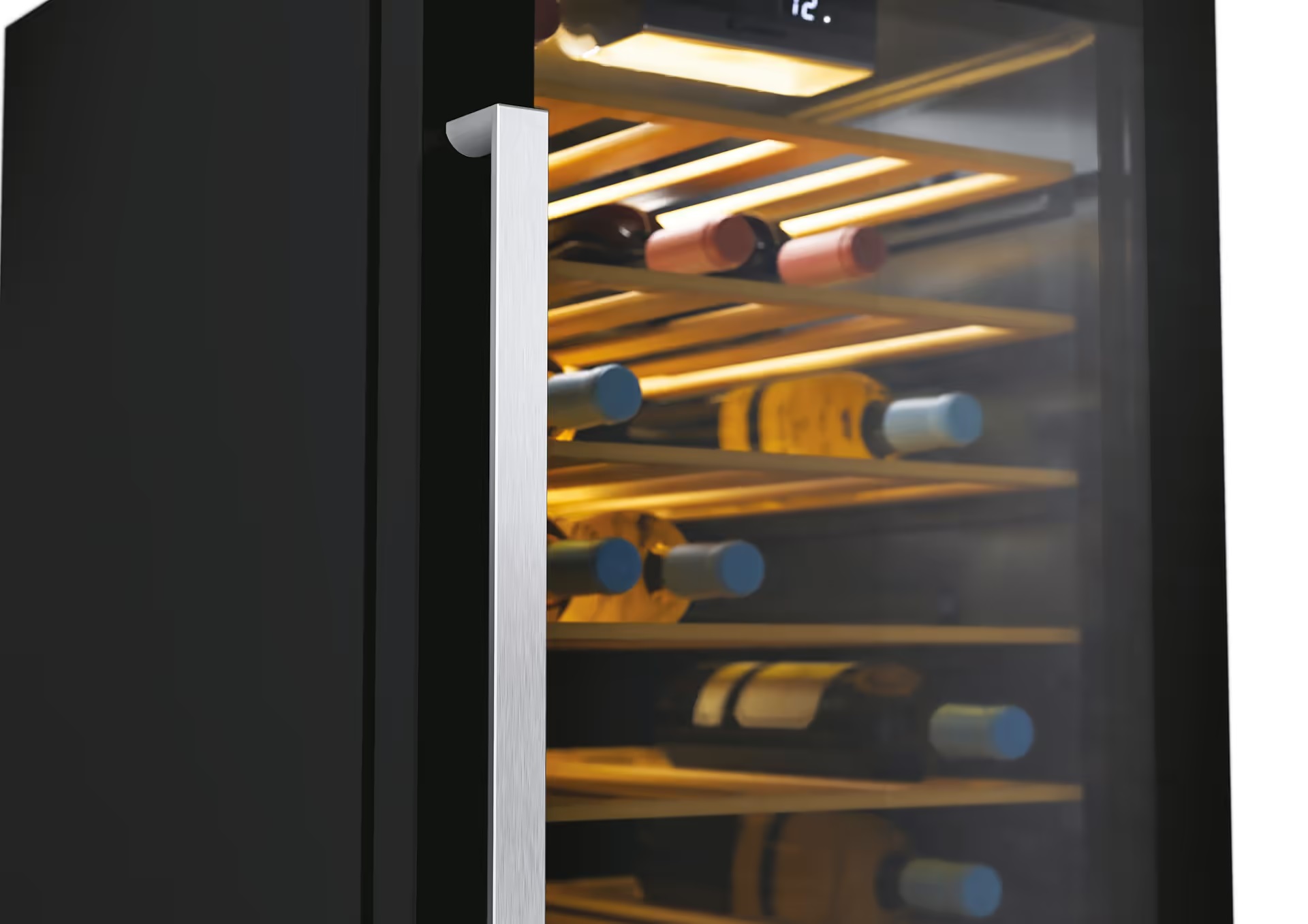 - ▪ 7 дерев’яних полиць — зменшення вібрацій та надійне розміщення пляшок
