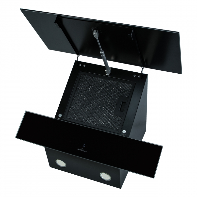Gamma 1000 — похила пристінна витяжка від українського бренду BEST CHEF. Корпус глибокого чорного кольору прикрашений скляними панелями, стійкими до пошкоджень та легкими для очищення від будь-яких забруднень.