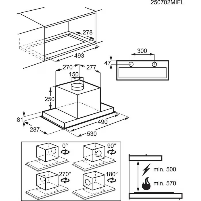 - ▪ Два режими очищення — зовнішнє витягування або рециркуляція повітря з вугільним фільтром (додаткова комплектація).