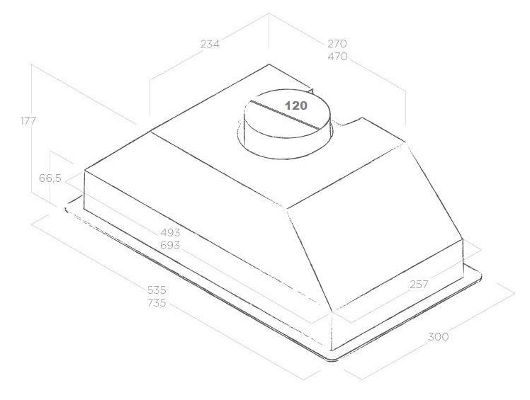 - ▪ Діаметр вихідного патрубка 120 мм забезпечує стабільну тягу та знижує шумове навантаження.