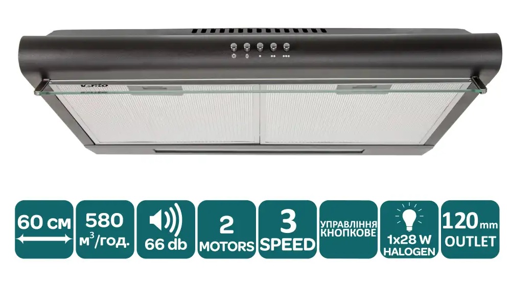 Витяжка стандартна ROMA 60 BK 2M LUX поєднує в собі строгий привабливий дизайн, відмінну продуктивність і доступну ціну. Вона однозначно створює затишок у Вашій кухні, адже ця модель чудово видаляє неприємні запахи та невеликі частки жиру. Її основні переваги - невелика ціна, можливість кріплення, як під шафа, так і безпосередньо до стіни.