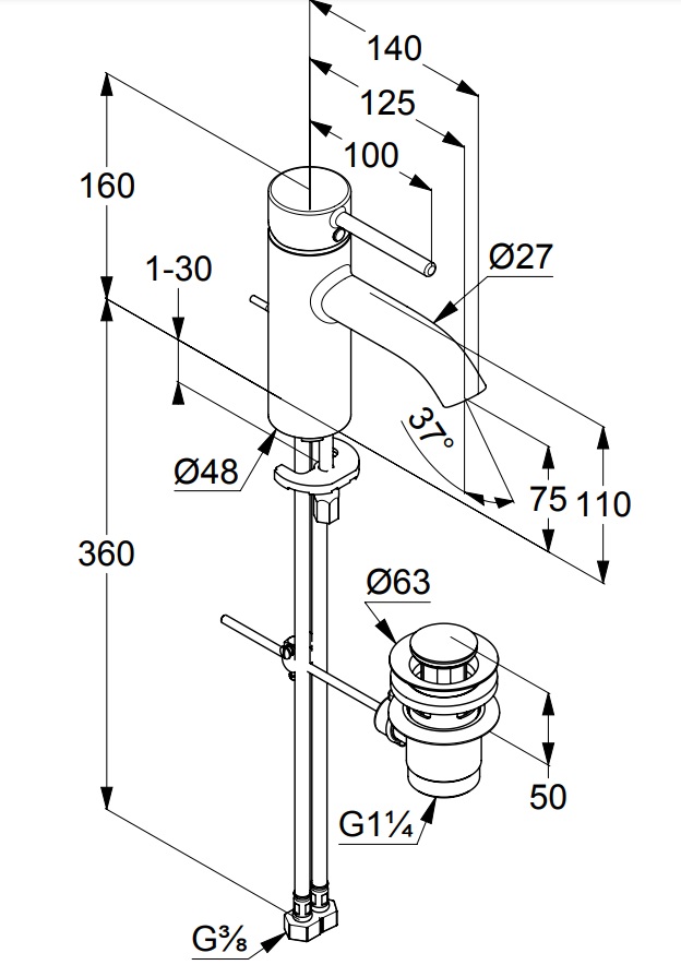 • ▪ Кількість отворів: 1 ▪ Стандарт підведення: 3/8"