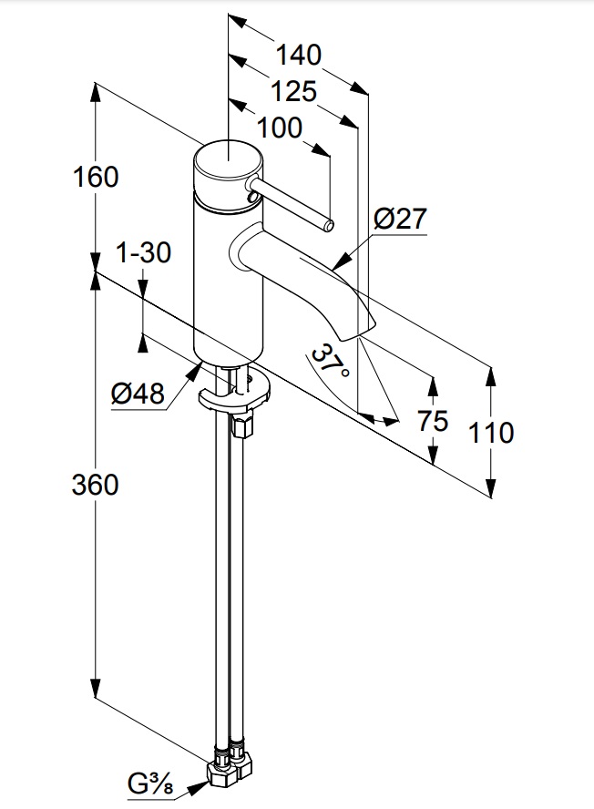 одноважільний змішувач на умивальник 75 DN 15