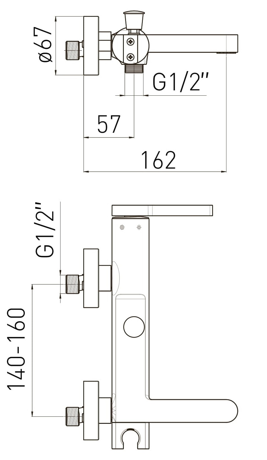 Тип керування: одноважільний. Тип монтажу: настінний, 2 отвори. Матеріал: латунь. Колір: хром. Витрата води: до 12 л/хв. Керамічний картридж Ø 35 мм. Аератор ABS-пластик. В комплект входять ексцентрики