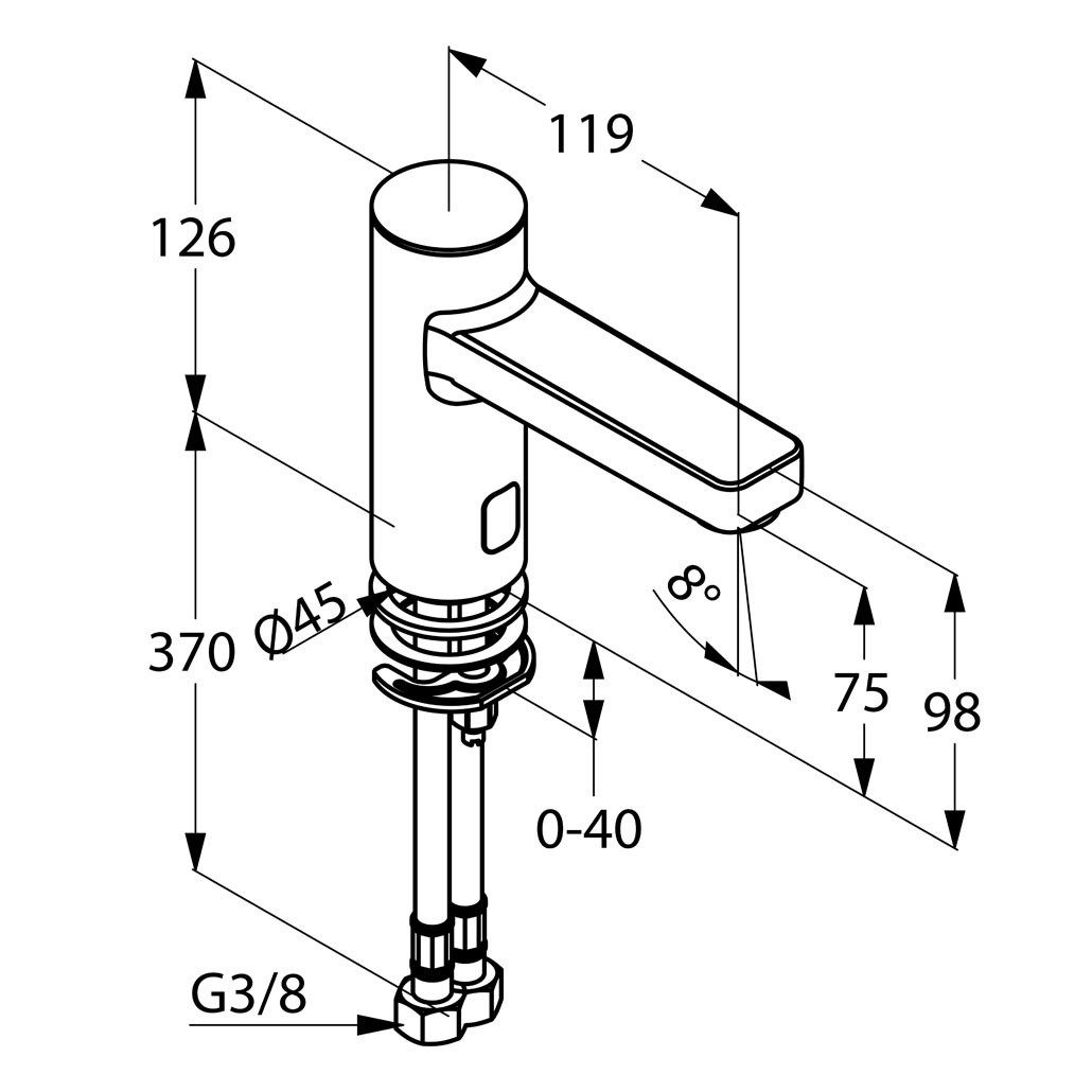 • ▪ Кількість отворів: 1 ▪ Стандарт підведення: 3/8"