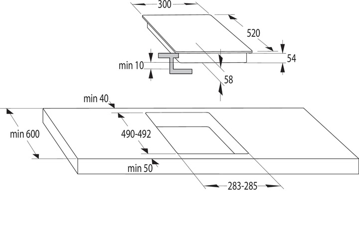 ▪ Размеры ниши для встраивания (В×Ш×Г): 7 × 28.3–28.5 × 49–49.2 см