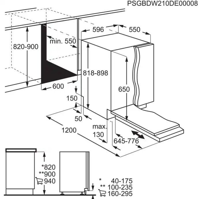 ▪ Размеры ниши для встраивания (ВхШхГ): 82–90 × 60 × 55 см