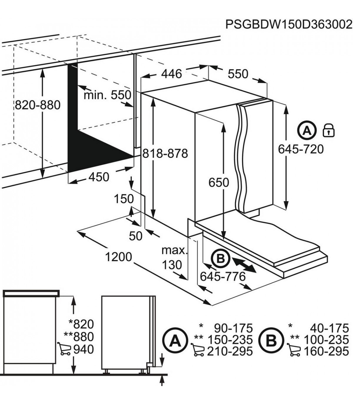 ▪ Размеры ниши для встраивания (ВхШхГ): 82–90 × 45 × 55 см