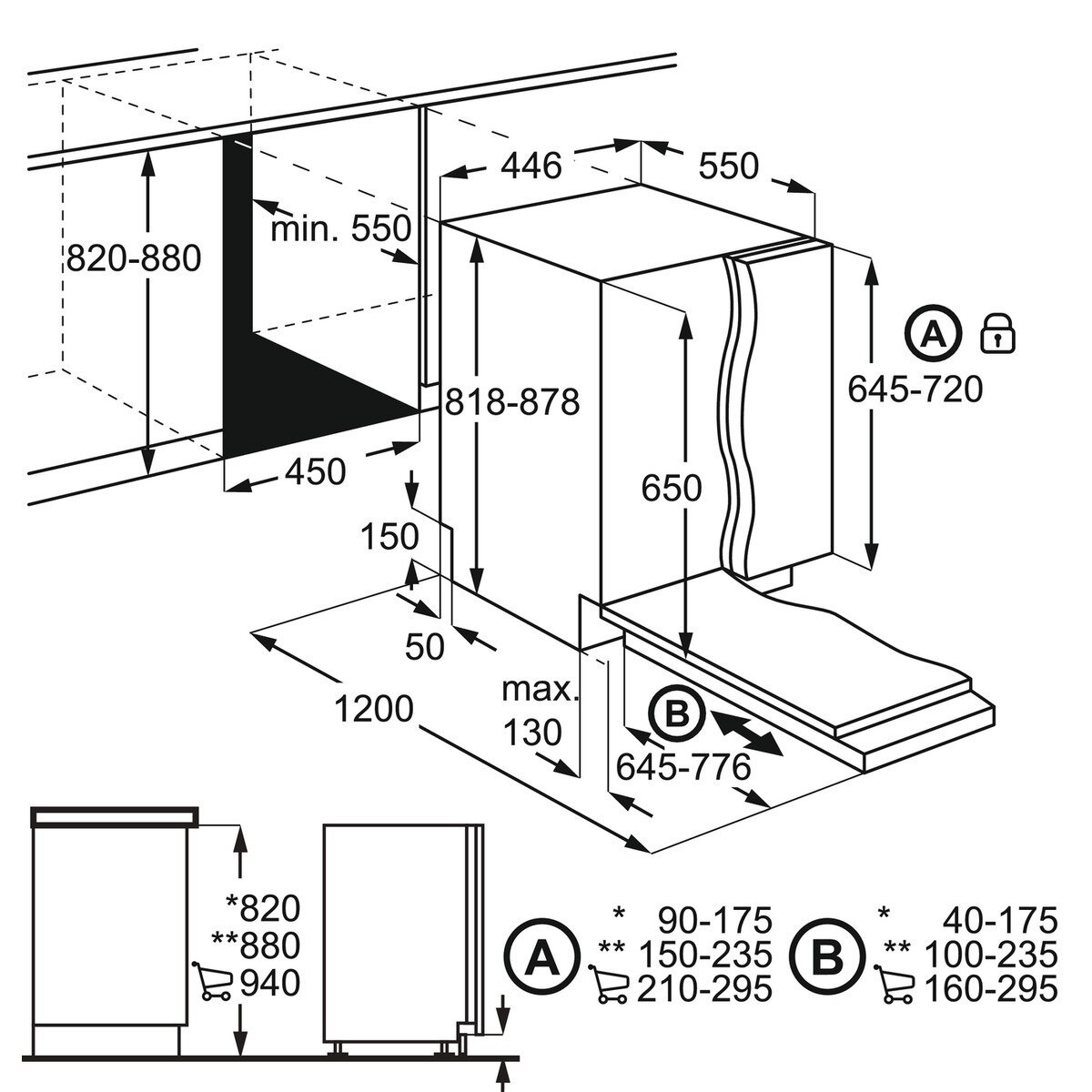 ▪ Размеры для встраивания (ВхШхГ): 820–900 × 450 × 550 мм