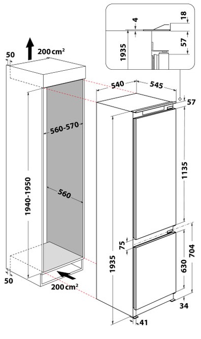 - ▪ Тип холодильника: встраиваемый ▪ двухкамерный
