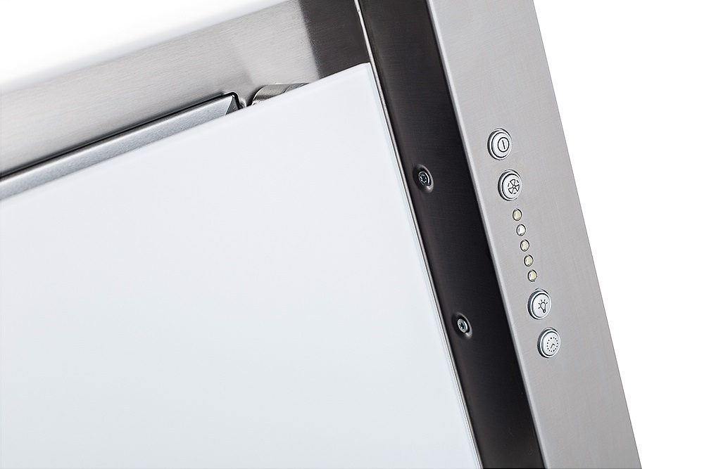 - ▪ Белое закалённое стекло обеспечивает премиальный внешний вид и простоту ухода.