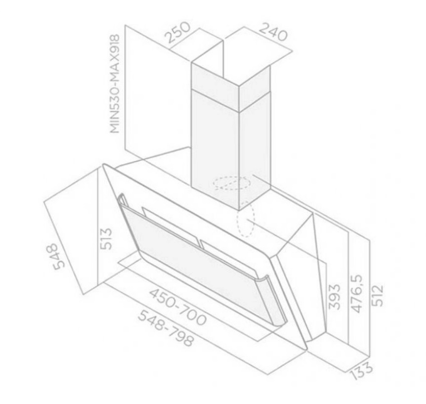 - ▪ Стеклянная наклонная панель придаёт вытяжке современный внешний вид